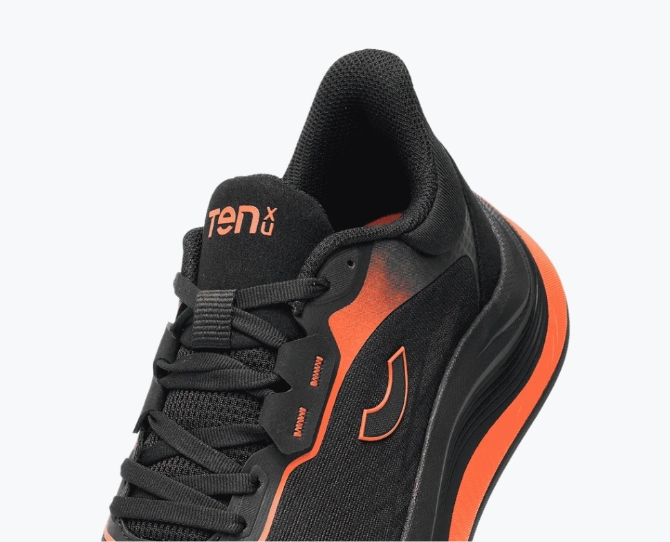 The Aeonic features a flared toe box that widens at the front, letting your forefoot splay naturally with every landing. Better spread means better balance and less bunion pressure over longer distances.
